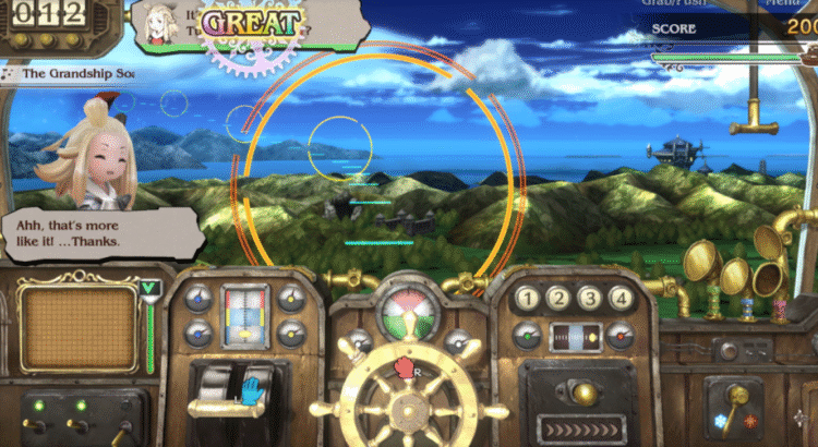 Minigame kedua, Ringabel’s Panic Cruise, mendapatkan lebih banyak jarak tempuh dari kontrol mouse. Di sini, saya harus mengemudikan pesawat saya melalui satu set cincin. Cukup sederhana. Saya mengendalikan kapal dari tampilan kokpit, menggunakan roda untuk mengarahkan dan tuas untuk naik atau turun. Saya bisa mengendalikan masing -masing secara mandiri dengan tikus saya, menggesernya untuk mengarahkan kapal dengan benar. Tugas itu rumit oleh fakta bahwa kru saya sesekali meminta saya untuk mengelola kapal dengan menggunakan panel kontrol di sekitar roda saya. Pada satu titik, saya perlu mengganti sekering dengan meraih satu dari sisi layar dan mengganti yang mati. Kemudian, saya diminta untuk memastikan beberapa sakelar berfungsi, menghubungi nomor tertentu pada panel, dan mengambil flyswatter untuk menangkis beberapa lalat sial – sedikit penghormatan kepada Mario Paint. Tentu saja, saya perlu melakukan semua itu sambil mengarahkan kapal.